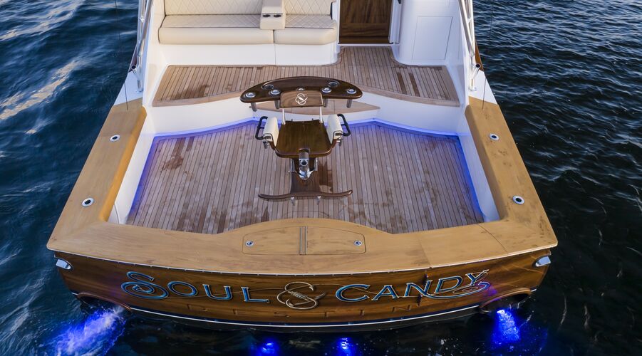 Artistry and charm converge in this 61-foot hardtop express. Soul Candy was designed as a family-friendly vessel with space for entertaining. She features a host of custom options that allow the owner-operator to communicate and interact with the crew on fishing trips to the Gulf of Mexico and the Bahamas.
