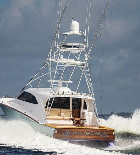 Artistry and charm converge in this 61-foot hardtop express. Soul Candy was designed as a family-friendly vessel with space for entertaining. She features a host of custom options that allow the owner-operator to communicate and interact with the crew on fishing trips to the Gulf of Mexico and the Bahamas.